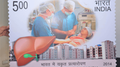 Stamp released to celebrate the 15th anniversary of India’s 1st successful liver transplant performed at...